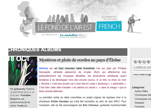Belle première chronique de la première sortie Okraïna par Guillaume Duthoit sur le webzine Le Fonds de l’air est French :